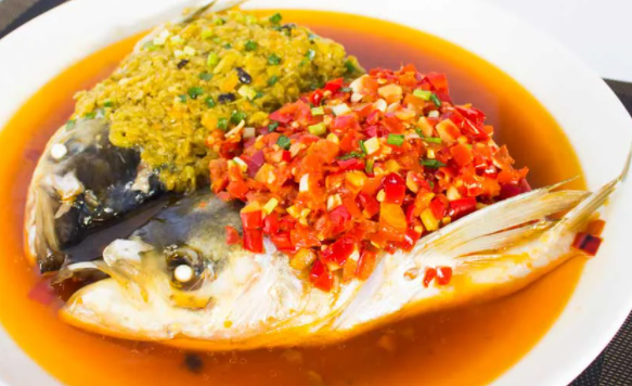 생선머리에 약간의 야채기름, 요리한 포도주, 잘게 썬 생강, 잘게 썬 절인 고추를 얹어 10분 정도 찐다. 맵고 매운 음식을 좋아하는 사람들은 이 불타는 음식을 놓치지 말아야 한다. 이 요리는 부분적으로 많은 중국인들이 생선 머리를 먹는 것이 여러분을 똑똑하게 만들 것이라고 믿기 때문에 인기가 있다. 여러분은 이것이 세 번째 생선 요리라는 것을 눈치챘을지도 모른다, 왜? 생선이 건강하고 맛있는 선택이기 때문만이 아니라 중국어로 된 생선의 발음은 '유'이다. 그것은 "유량" 또는 "부유량"의 호모폰이다. 이러한 음성적 유사성으로 인해 물고기는 중국 문화에서 풍요와 번영의 상징이 되었다.
