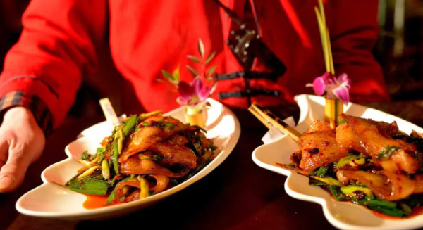 트와이스 요리 삼겹살은 매운 삼겹살의 쓰촨성 음식으로, 단연코 맛있고 꼭 먹어봐야 할 음식이다. 연한 삼겹살은 고추장과 발효된 넓은 콩으로 만든 풍부한 소스로 조리해 고소하고, 약간 달며, 매콤한 맛을 낸다. 그것은 놀랍도록 퇴폐적이고 중독성이 있어 한번 시작하면 멈출 수가 없다.