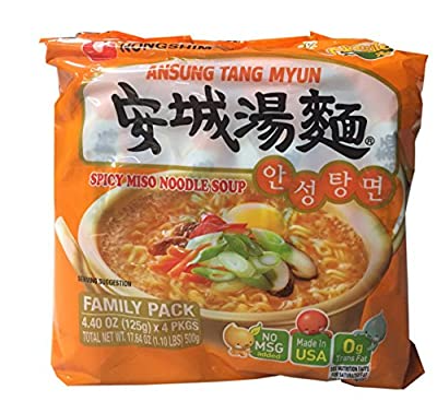 이 조각들은 라면에 맛과 식감을 더할 뿐만 아니라 영양분을 더한다. 향신료 수준에 대해서는, 이것은 아주 흥미롭지만, 대부분의 사람들에게는 확실히 견딜만 하다. 볶음 변종도 나온다.