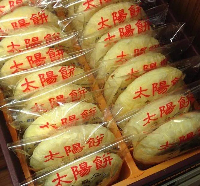 다정하게 타이양빙으로 알려진 선 케이크는 타이중에서 유래한 것으로 선물상자에 주로 팔리는 말토오스(응축 맥아당)를 곁들인 둥글고 얇게 썬 페이스트리다.