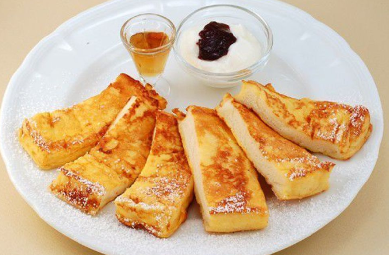 잘게 썬 빵이나 프렌치 빵은 계란과 우유에 적셔 완전히 튀겨졌습니다. 은은한 단맛으로 일본에서 파는 프랑스산 구슬의 맛은 서쪽에서 파는 맛과 눈에 띄게 다릅니다.
