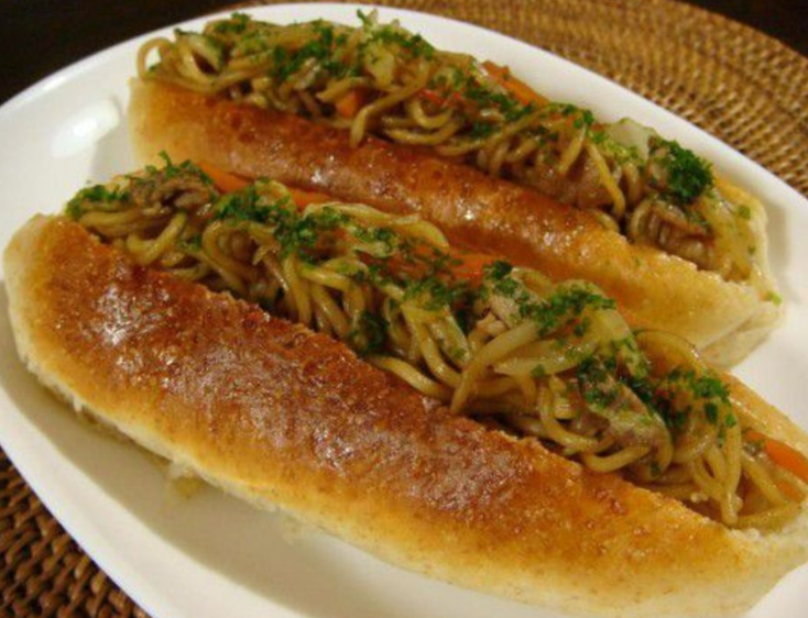 야키소바 볶음면이 가득 담긴롤. 양념으로 덮인 야키소바와 롤이 얼마나 잘 어울리는지 알면 놀랄 것입니다.