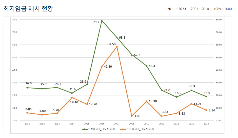 2023년 최저임금과 과거의 인상 현황